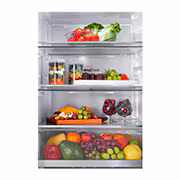 -Based on TÜV Rheinland test results using LG’s internal testing method measuring the time it took to reach 5% weight reduction rate of pak choi on the shelf of the fresh food compartment of the LGE LinearCooling™ model LBD33BLM. The result may vary in actual usage.